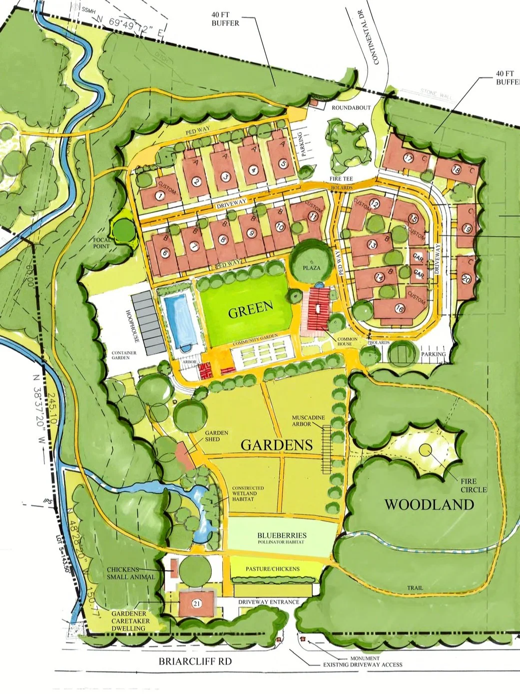A thoughtfully designed pocket neighborhood in Atlanta preserves the rural character of a historic farm while fostering stewardship and connection to nature. Pendergrast Farms features include a 1-acre urban organic farm, 5.5 acres of woodlands with trails and a stream, a saltwater pool, a Common House, and 20 energy-efficient homes designed for well-being and sustainability.